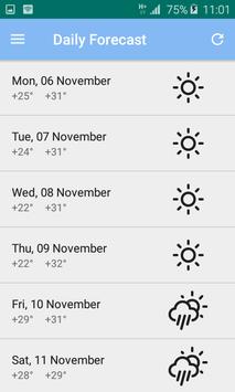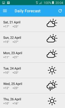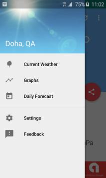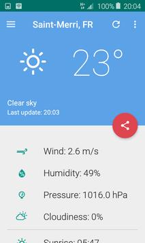 un simple clic pour activer l'emplacement GPS et vous recevez la température actuelle en degrés Celsius et Fahrenheit. Il fournit également l'état actuel de la météo, l'humidité relative, la pression atmosphérique, point de rosée, la vitesse et la direction du vent, en septe jours de prévisions météorologiques les conditions météo dans votre position actuelle.