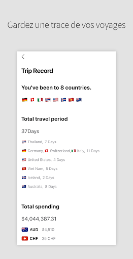 - Vérifiez tous les pays, la période et les dépenses de vos voyages