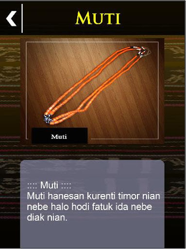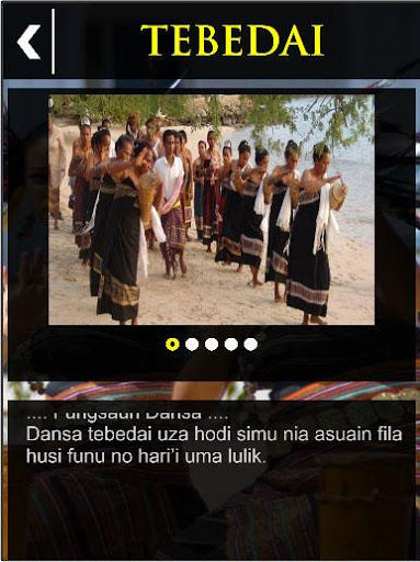 La danse du Timor est une application de reconnaissance de danse typique de Timor Island.Timor Danse dans cette application se compose de 5 danses, nommément: Tebedai Dance, danse Likurai, Bidu Dance, Danse pour danse et danse Bsoot.Cette application de danse Timor affiche des photos des extraits de danses, d'informations, d'historique et d'accessoires de fournitures de vêtements utilisés lors de la mise en scène de la danse.
