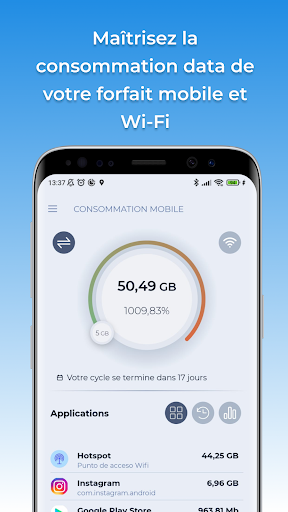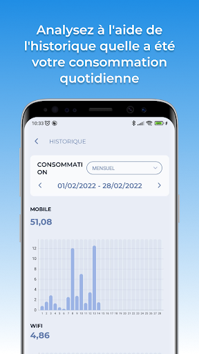 Vous pouvez également consulter l'évolution de votre consommation dans l'historique des données pour voir comment vous vous êtes amélioré et en plus d'être informé de la consommation de données mobiles, vous pouvez également consulter votre consommation Wi-Fi !
