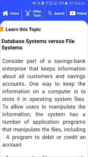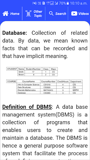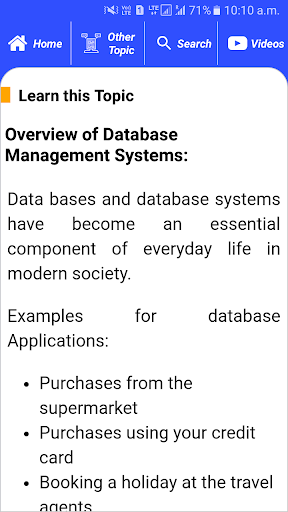 This useful App lists 150 topics in 5 chapters same as a book, totally based on practical as well as a strong base of theoretical knowledge with DBMS notes written in very simple and understandable English.