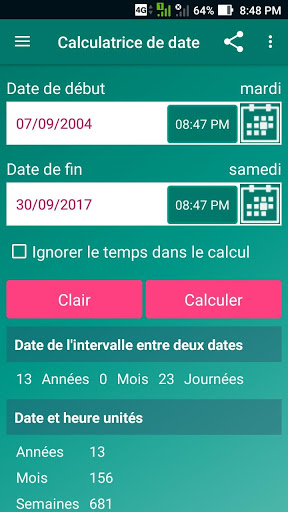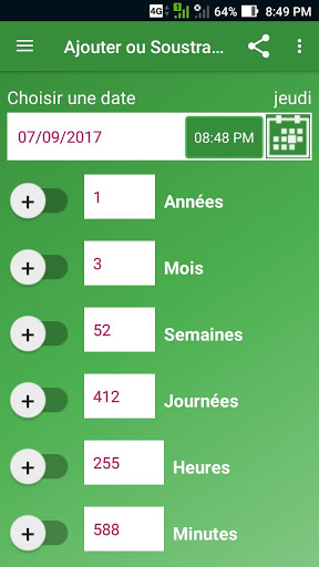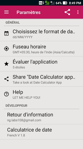 Merci d'avoir choisi la calculatrice de date! Cette version contient les fonctionnalités suivantes.