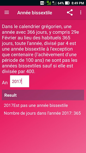 ► En utilisant cette application, trouvez simplement une année bissextile et vous trouverez également des jours complets au cours d'une année donnée.