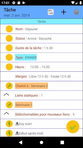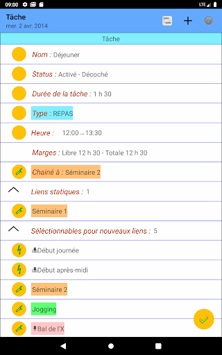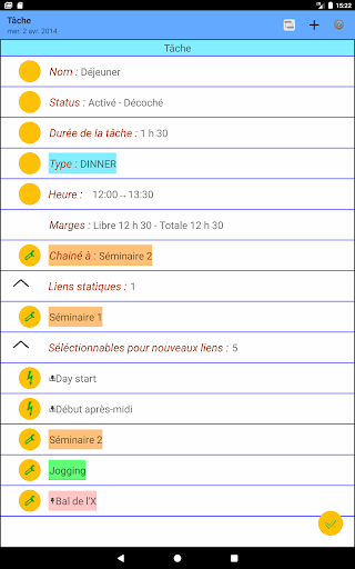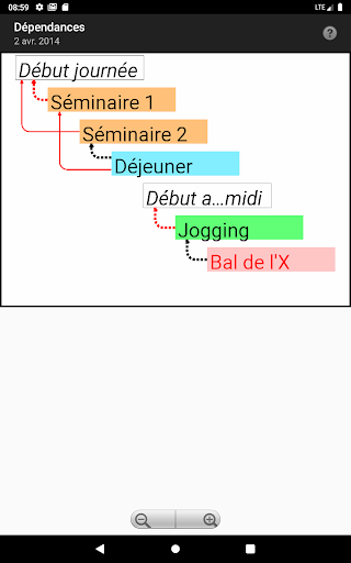 Mais vous pourrez aussi fixer l'heure de certaines taches, ajouter des événements et des notes, ajouter des liens supplémentaires entre tâches et événements... et ainsi définir des tâches qui se suivent, se chevauchent, sont menées en parallèle...