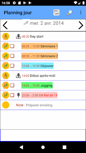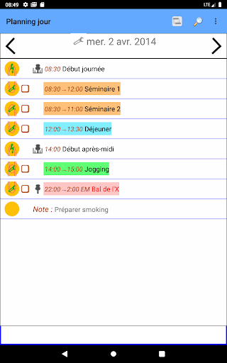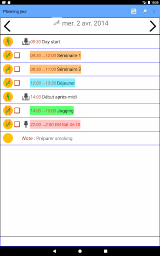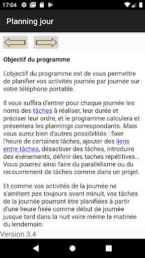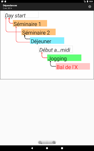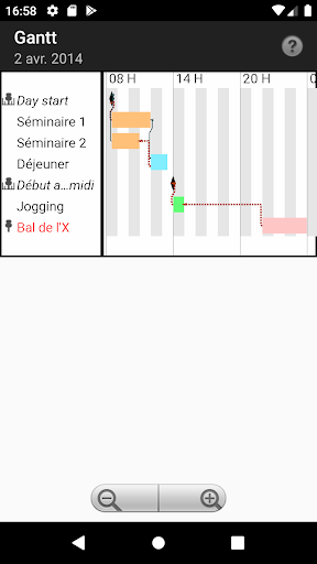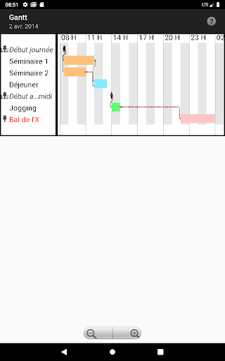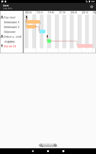 Gérez chacune de vos journées comme un projet et laissez votre téléphone calculer votre planning ou celui de votre équipe. Il vous suffira d'entrer les activités prévues (tâches),leur ordre et leur durée, votre téléphone calculera votre planning et les marges pour chaque activité et pourra vous les présenter de diverses manières : listes triées, diagrammes de Gantt ou de dépendances, synthèses hebdomadaires ou mensuelles...