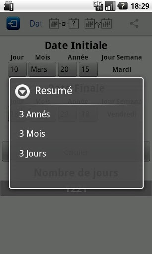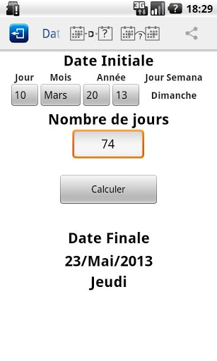 de Jours, ce qui vous permet de connaître les jours entre les dates, calculer une date future ou passée et aussi de savoir quel jour de la semaine est tombé cette date. Pour l'application inclut également un calendrier perpétuel pour voir si la date a été choisie lundi, par example.