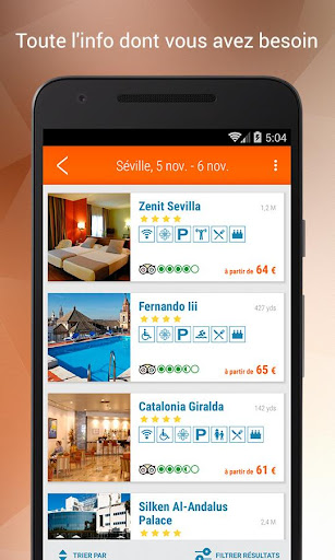 L’appli met à votre portée une description des services de chaque hôtel, des photos ainsi qu’une carte pour que vous sachiez où il se trouve.