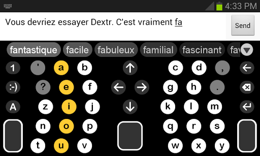 Pour les utilisateurs expérimentés, Dextr offre l'une des présentations QWERTY les plus raffinées, avec toutes les fonctionnalités que vous attendez.