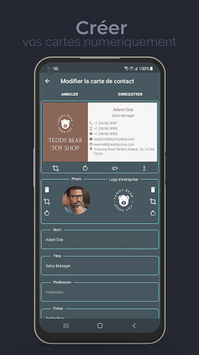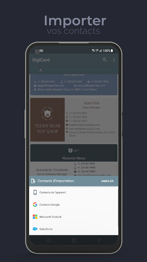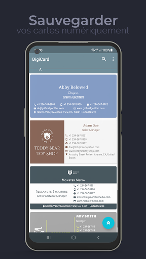 Scanner / lecteur de cartes de visite: Numérisez vos cartes de visiteur et enregistrez-les sur votre téléphone ou votre tablette. DigiCard est une application de carte de visite intelligente qui contient vos cartes de visite.