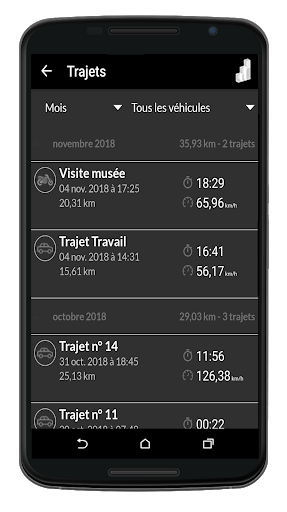 - statistiques détaillées de vos trajets, par semaine, par mois ou par année