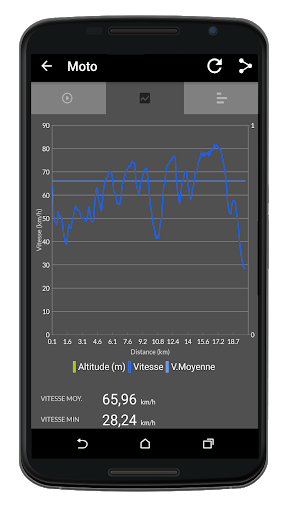 Il suffit de balayer l'écran pour changer de vue (compteur de vitesse, étape, dashcam, boussole, statistiques des trajets, courbes, diagrammes)
