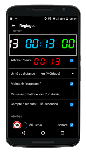 - avertissement de vitesse atteinte personnalisable avec alerte sonore