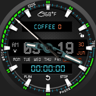 The Android Wear 2.0 comes with external complication which this watch face supports completely.