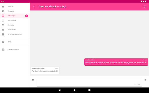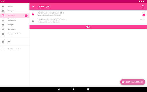 Communication directe et sécurisée entre les établissements d'enseignement (classes) et les parents et/ou tuteurs respectifs. Au sein d'une communauté scolaire, Dimmi permet l'échange contrôlé d'informations sur les activités éducatives, l'envoi de messages importants, de rappels et de notes.