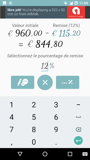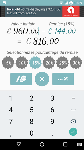 Calcul des remises n'a jamais été aussi simple: entrez le montant, appuyez sur le bouton avec le pourcentage souhaité, et vous avez terminé! Le calcul sera effectué et affiché automatiquement!