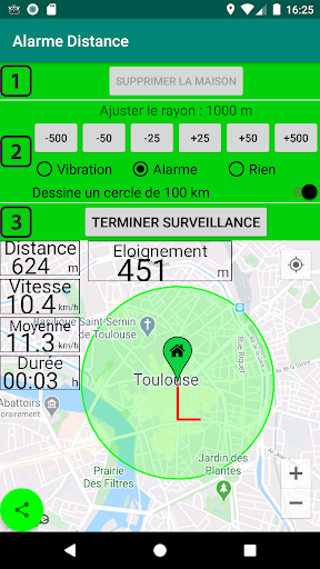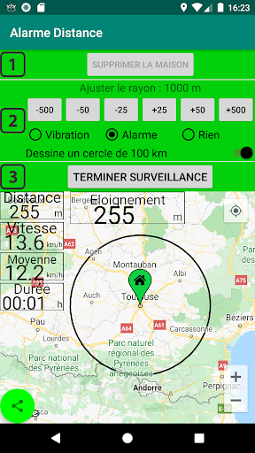 C'est parti : Alarme Distance sonnera ou vibrera si vous quitter la zone autorisée.