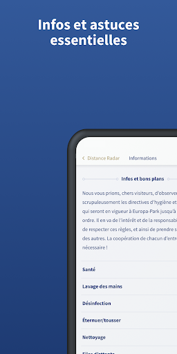 En outre, vous obtiendrez des infos essentielles et des bons plans pour votre séjour à Europa-Park. Veuillez considérer que l’intégralité des fonctions de Distance Radar ne pourra être utilisée que sur place dans l’enceinte d’Europa-Park.