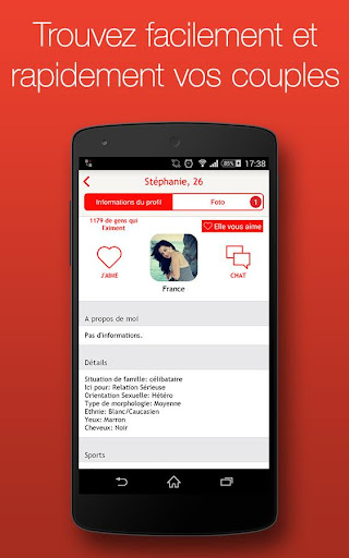 C'est un super endroit pour flirter, tchatter et faire des rencontres. En quelques simples clics vous pouvez démarrer une nouvelle relation, rencontrer de vraies personnes ou trouver le grand amour. Ne ratez pas cette chance de trouver votre couple aujourd'hui.