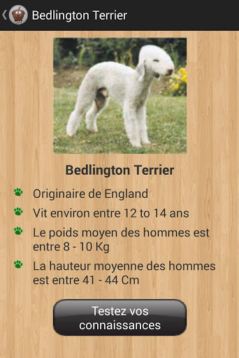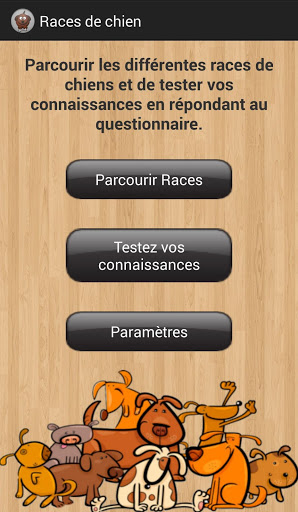 Races de chien application vous permet de parcourir et de revoir plus de 200 races de chiens et de tester vos connaissances. Il suffit de sélectionner une race de chien de la liste et de lire une courte description et d'apprendre ce que vous avez toujours voulu découvrir sur cette race.