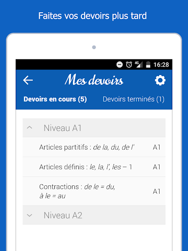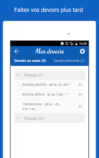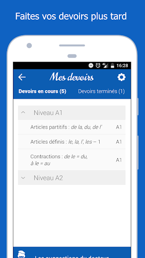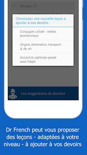 Dr French peut ajouter à vos devoirs des leçons à votre niveau et au rythme que vous voulez pour vous aider à progresser avec régularité.