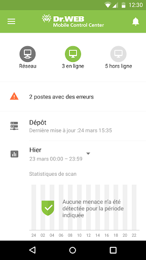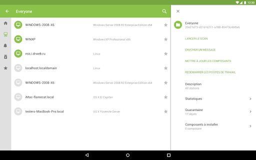 Le Centre de Gestion Mobile Dr.Web est un outil ergonomique pour la gestion du réseau antivirus basé sur Dr.Web Enterprise Security Suite ou Dr.Web AV-Desk. Il est conçu pour être installé et exécuté sur des appareils mobiles.
