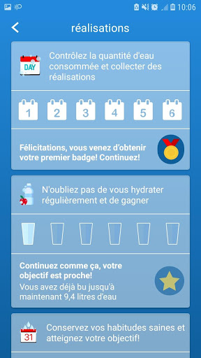 gagner des récompenses en fonction des objectifs atteints qui vous motivent à hydrater systématiquement