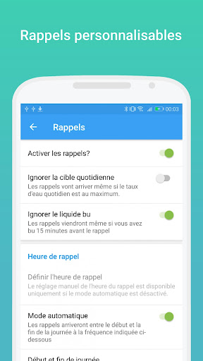 Vous pouvez activer automatiquement et définir les réglages manuels de l'heure des rappels.
