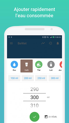 Ajouter rapidement des boissons de volumes les plus utilisés. Il y a quelques mélodies pour rappel. Définissez des rappels pour le volume de l'alarme afin que vous ne manquiez rien en mode silencieux.