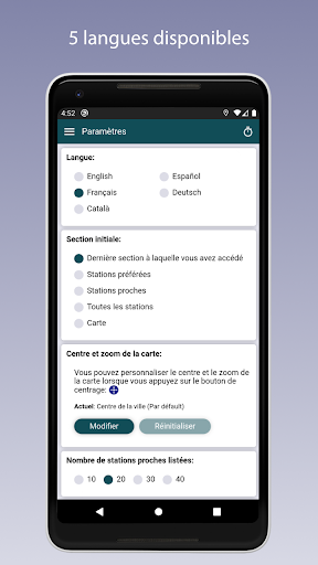 - Liste des stations préférées et classées en groupes (domicile, travail, amis ou général).
