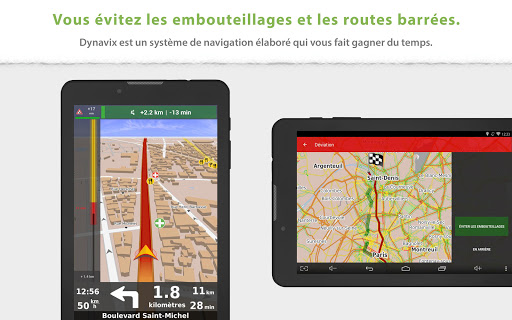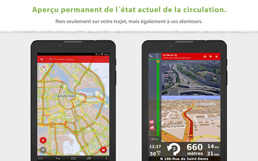+ GPS navigation intelligente possible grâce à un accès aux informations en temps réel du trafic routier et du réseau de webcams routières.