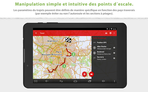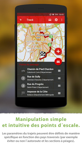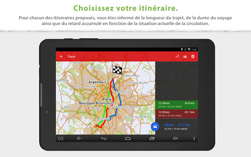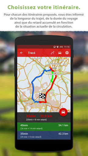 • Accès aux informations en temps réel du trafic routier (risques d´embouteillage, fermetures de routes etc.) pour une planification optimale de l´itinéraire le plus rapide (fournisseur de données INRIX)