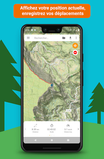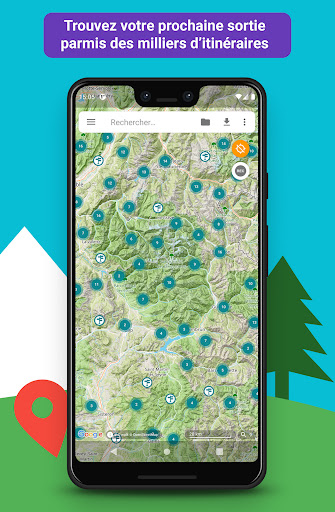 • intégration complète d'IGNrando' (https://ignrando.fr) : explorez les parcours sur la carte, synchronisez vos contenus mobiles IGNrando', envoyez de nouveaux parcours (nécessite un compte IGNrando' gratuit)