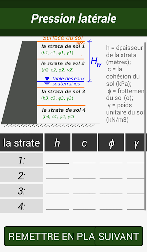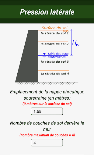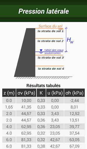 - Meilleure application pour dessiner des diagrammes de pression latéraux - jusqu'à 4 couches de sol - Rankine, Coulomb - changement d'emplacement de la nappe phréatique - actif, Passif