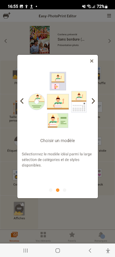 Il suffit de sélectionner le type de modèle que vous souhaitez créer, puis modifiez-le, décorez vos photos et imprimez.