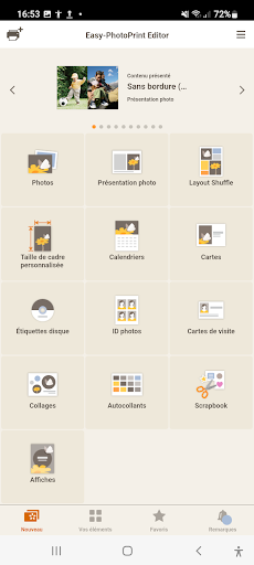 Libérez votre créativité avec Easy-PhotoPrint Editor, une application d'impression photo facile à utiliser. Vous pouvez utiliser un éditeur pour réaliser librement votre mise en page ou une sélection de modèles afin de créer tous types de contenu personnalisé à partir d'images provenant de votre téléphone, de votre tablette ou du Cloud (dispositions de photos, cartes, collages, calendriers, étiquettes de disque, photos d'identité, cartes de visite, autocollants et affiches).