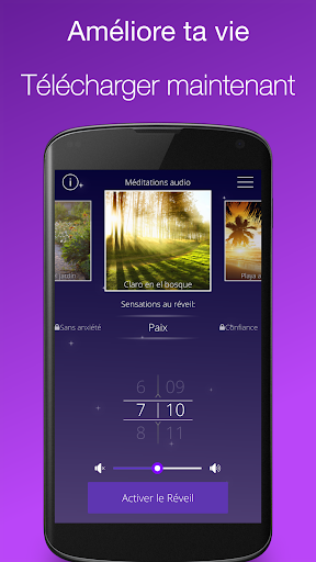Les effets sonores tranquilles incorporés dans les méditations améliorent vos visualisations et l’efficacité de l’appli.