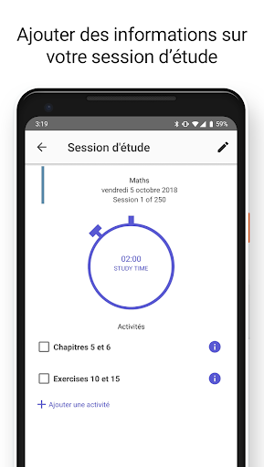 -Possibilité d'ajouter la liste des activités pour chaque session d'étude ;