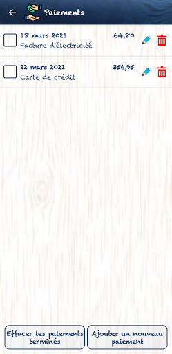 Liste des paiements où vous pouvez suivre votre ordre de paiement à venir par date d'échéance. Vous pourrez également voir le montant total de vos paiements à venir mois par mois.