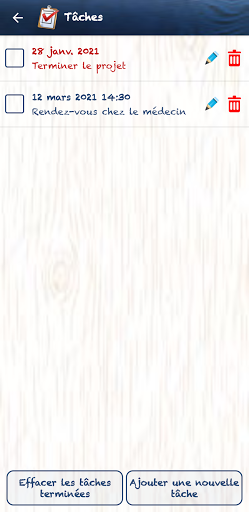 Liste des tâches dans laquelle vous pouvez créer des tâches avec une date d'échéance et une heure d'échéance en option,