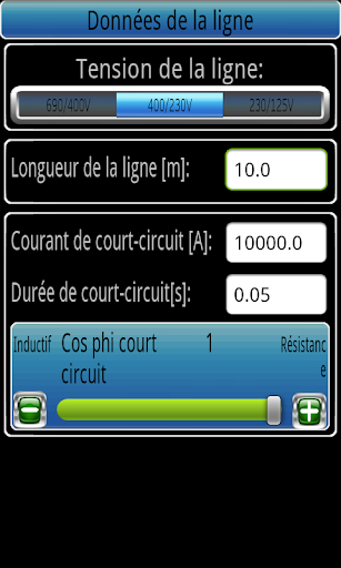 Application pour le calcul des différents paramètres électriques. Assurez-dimensionnement des lignes, des transformateurs et calcul compensation de puissance réactive.