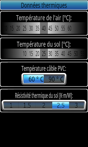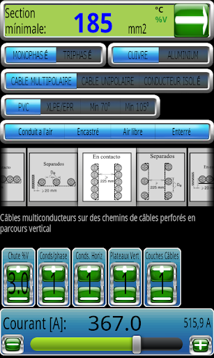 Le dimensionnement des câbles se fait sur la base de trois options sélectionnables individuellement: