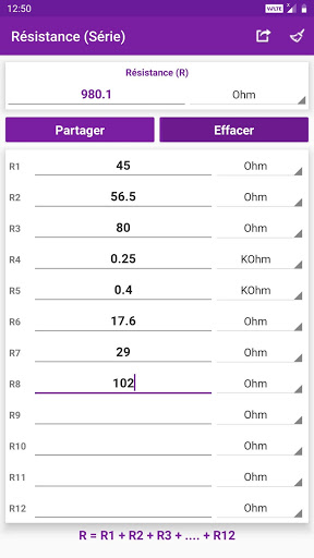 Calculatrice Electrique contient 45 calculatrices, qui peut rapidement et facilement calculer différents paramètres électriques. Calculs automatiques et conversions avec chaque unité et de l'évolution de la valeur.