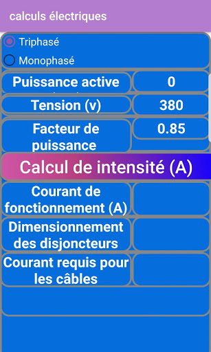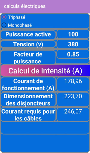 Cette application effectue les calculs nécessaires pour les électriciens, ingénieurs ou techniciens