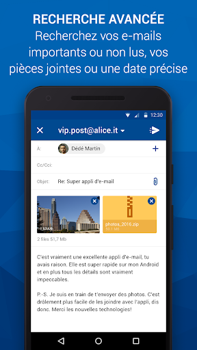 – Une fonction de recherche par date, destinataire, objet, non lu, messages signalés ou pièces jointes pour vous aider à retrouver vos mails en un éclair
