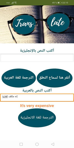 Vous êtes en anglais. Seulement en arabe.L'application traduira la phrase en anglais par écrit et oralement. >