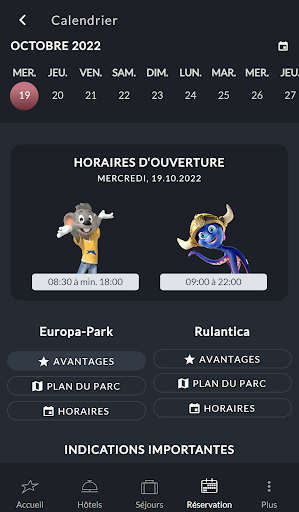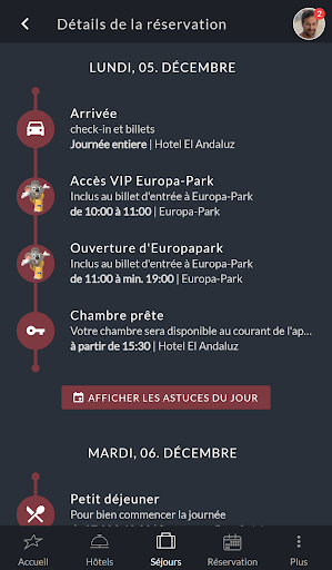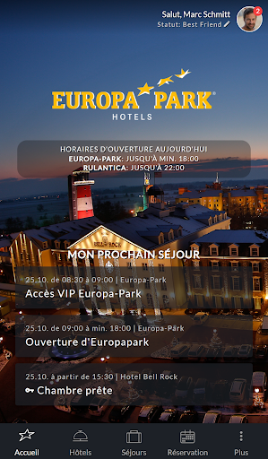 L’appli des hôtels d’Europa-Park sera ton compagnon idéal pour des moments inoubliables à Europa-Park - Parc de Loisirs & Resort. De nombreuses fonctions t’aideront à composer ton séjour selon tes envies. Que tu souhaites réserver une formule de séjour dans les hôtels, un soin dans les espaces wellness ou encore planifier un voyage avec toute la famille, l’appli des hôtels intègre tout ce qu'il te faut, et bien plus encore !
