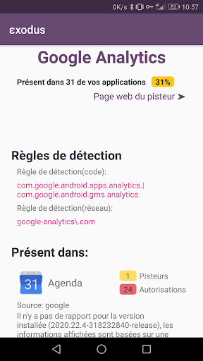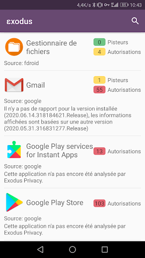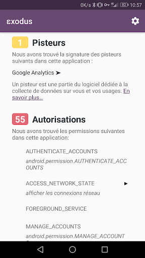 L'application télécharge les rapports d'Exodus Privacy (https://exodus-privacy.eu.org/) et vous les montre application par application.