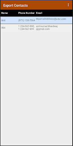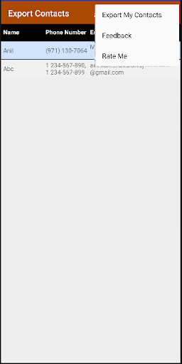 This app shows all your contacts available in phone and provides options to export in CSV file, which you can email to your own id. CSV file can be opened in Excel, Notepad on other devices