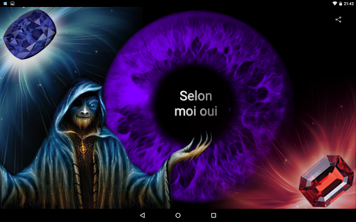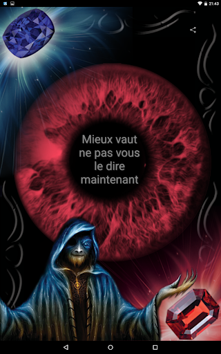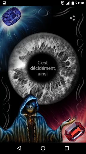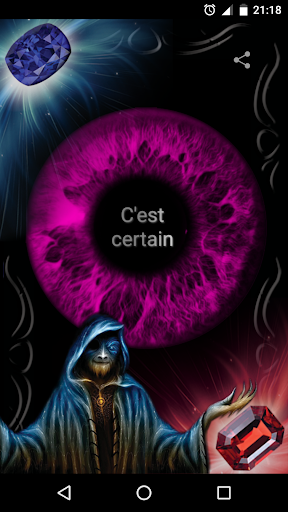 Cette application est un jeu à caractère ludique! Les développeurs du programme "Oeil magique" ne peuvent en aucun cas porter la responsabilité des déclarations, actions ou actes commis par les utilisateurs, sur la base des réponses de l'application. En installant cette application, "Oeil magique" l'utilisateur à l'entière responsabilité dans la prise de décision finale et les conséquences associées à celle-ci.