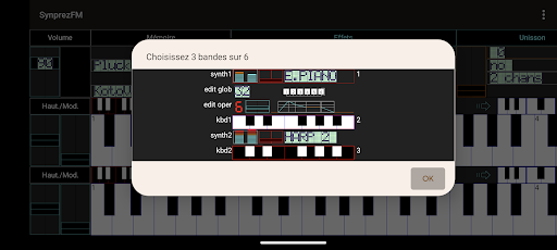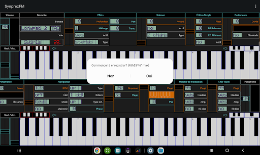 En tant qu'émulateur de DX7 Yamaha, SynprezFM 2 peut également reproduire avec une fidélité raisonnable les fichiers sysex que vous pouvez télécharger dans un répertoire de stockage externe appelé 'com.synprez.fm', afin d'étendre la banque de démonstration intégrée. Vous pouvez également créer et sauvegarder vos propres instruments, soit en éditant les sons des banques internes, soit en démarrant de zéro avec la fonction 'init voice'.